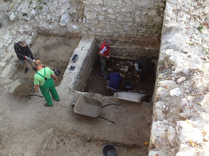 2018-ban folytatott ásatás során a kaputorony területére koncentráltunk. Meg akartuk ismerni, hogy mit rejt a kaputoronynak a belső területe, meddig tart a torony falazata a föld alatt.